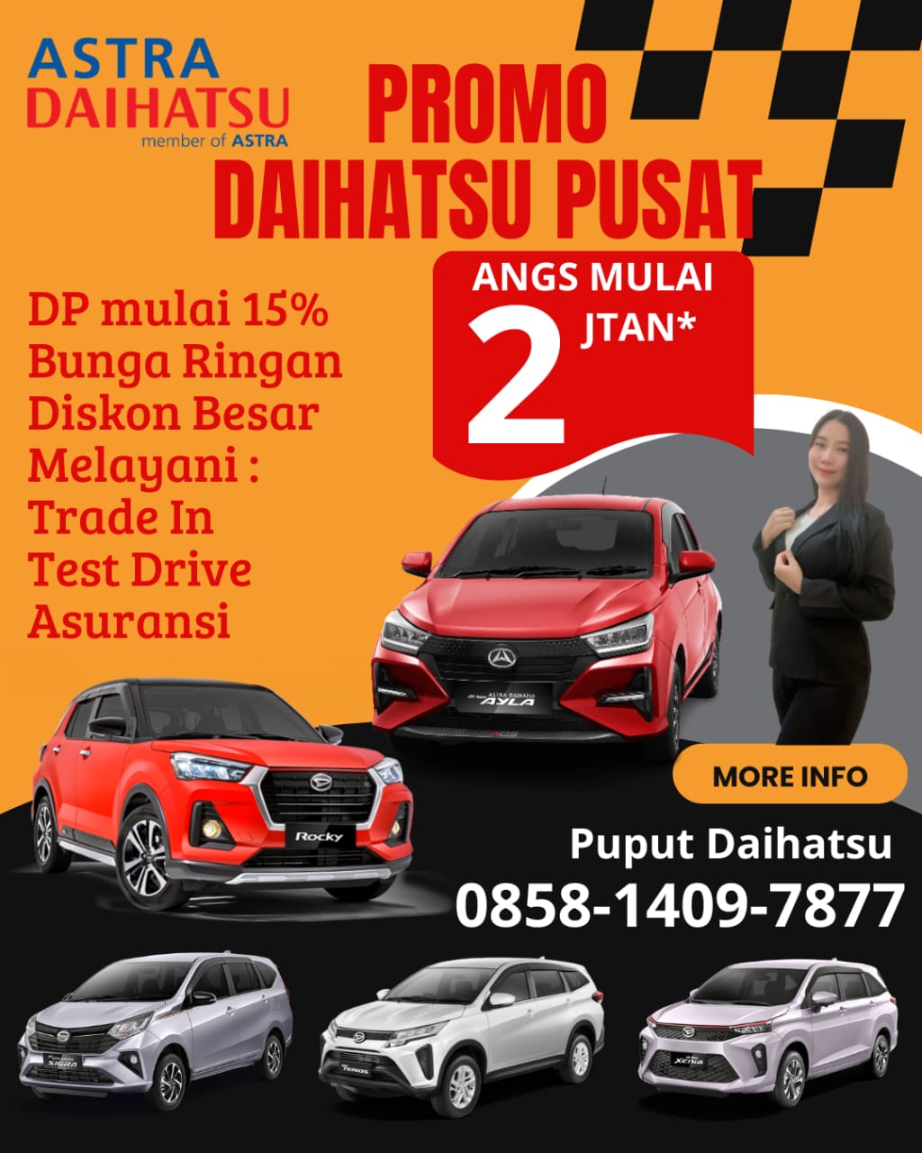 Di tengah denyut kehidupan Jakarta Timur yang dinamis dan penuh cerita, Daihatsu hadir sebagai sahabat perjalanan yang setia menemani setiap langkah Anda. Bersama pelayanan ramah dari Mbak Puput, kami siap membantu Anda menemukan mobil Daihatsu yang sesuai dengan kebutuhan dan ritme hidup di kawasan Jakarta Timur. Hubungi Sales Mobil Daihatsu Jakarta Timur pada nomor kontak di website ini, dan mulailah kisah perjalanan Anda bersama Daihatsu.