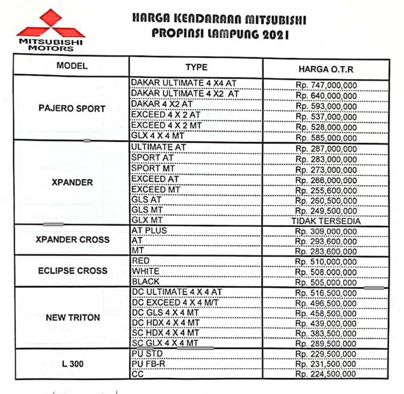 2. Harga Mobil Mitsubishi By Ferdi